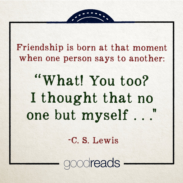 “Friendship ... is born at the moment when one man says to another "What! You too? I thought that no one but myself . . .”