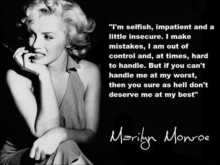 “I'm selfish, impatient and a little insecure. I make mistakes, I am out of control and at times hard to handle. But if you can't handle me at my worst, then you sure as hell don't deserve me at my best.”